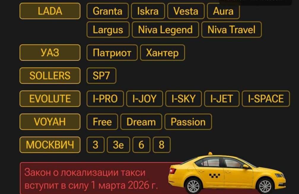 Согласно новым нормам, автомобили будут включать в реестр такси только при выполнении одного из двух условий. Первое — общее число баллов локализации при производстве машины соответствует параметру, установленному правительством для госзакупок (3,2 тыс. баллов). Второе — автомобиль был произведен в рамках специального инвестконтракта, заключенного в период с 1 марта 2022 по 1 марта 2025 года, — сообщил портал Autones.