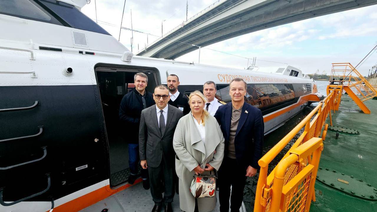 Яцкин ознакомился с работой судоходной пассажирской компании «Дон» в рамках поручения председателя Совфеда Валентины Матвиенко об организации водного пассажирского сообщения между городами Приазовья. Компания использует для перевозок скоростные суда на подводных крыльях «Валдай 45Р-18» и оборудованный для морских условий «Метеор-120Р».