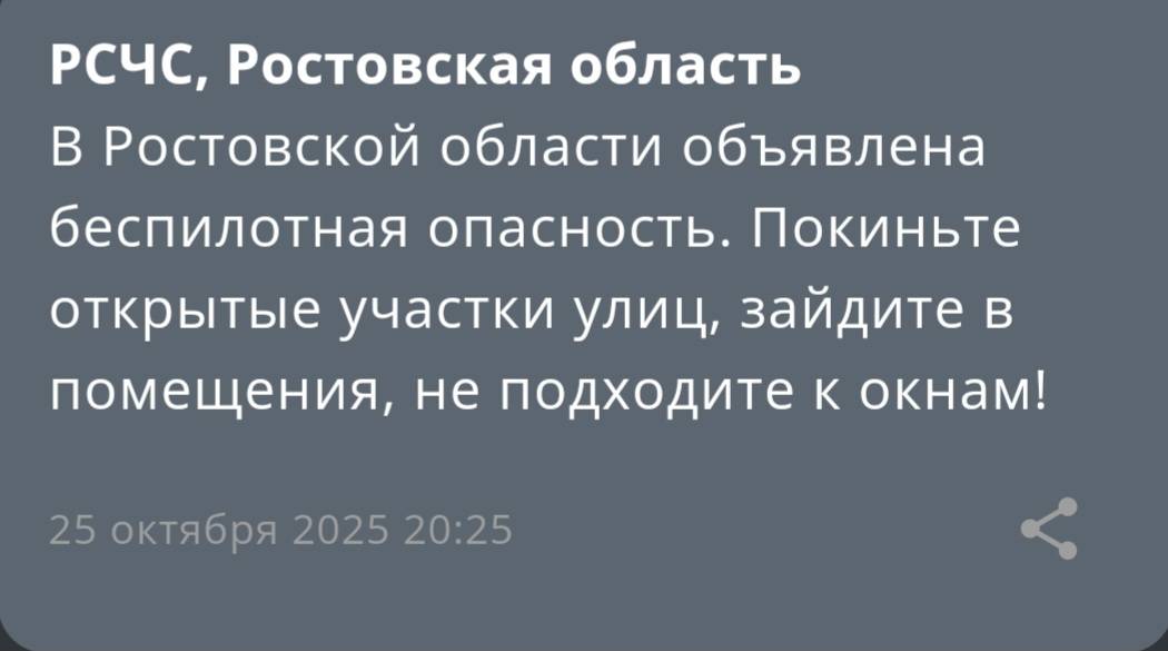 В пережившей несколько массированных атак Ростовской области вновь объявлена беспилотная опасность