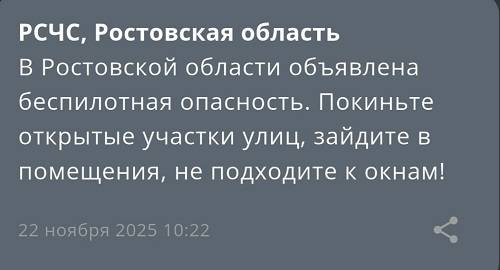 Ростовской области утром, 22 ноября, угрожают украинские беспилотники.