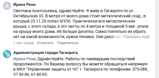 Ранее губернатор Ростовской области Юрий Слюсарь сообщил, что Таганрогу из резервного фонда области на выплаты пострадавшим будет выделено 19 млн рублей — документы для этого город уже готовит. Сбор заявлений от граждан идёт до 28 ноября.