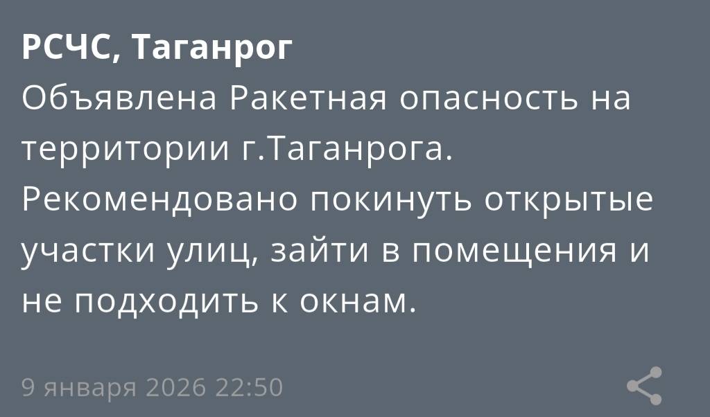 В Таганроге на фоне ракетной угрозы глава города объявила воздушную опасность.