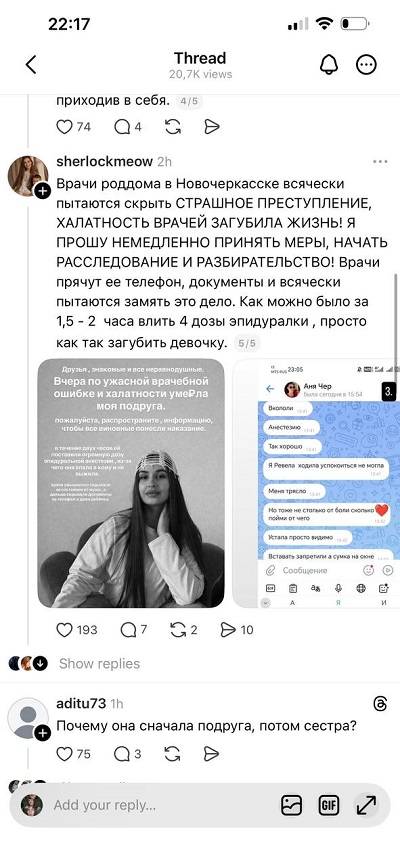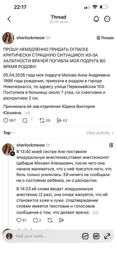 Меж тем подруга погибшей описала все происшедшее в соцсетях.