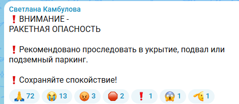 Глава города Светлана Камбулова призвала горожан покинуть улицы и сохранять спокойствие.