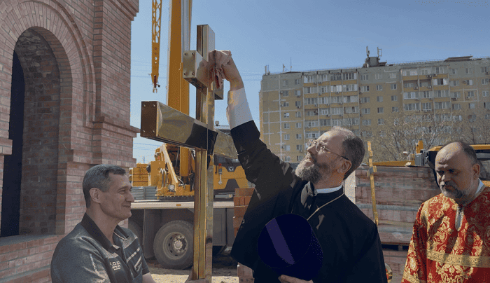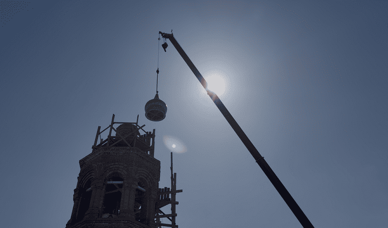На строящейся колокольне Свято-Троицкого прихода Таганрога установили крест